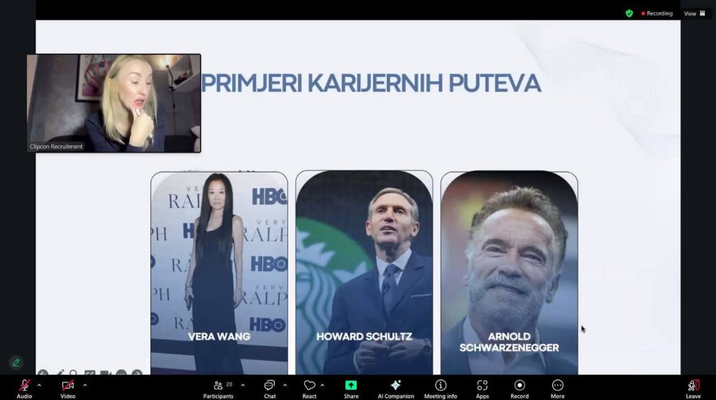 26.11.2025. je održano prvo predavanje u okviru programa Akademija mladih lidera!Predavanje je vodila Milena Radenović, osnivačica i direktorica Clipcon d.o.o., stručnjakinja sa više od deset godina iskustva u oblasti HR-a, regrutacije i employer brandinga, te doktorantkinja menadžmenta.